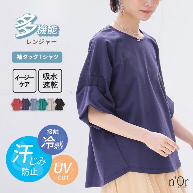 Tシャツ レディース トップス カットソー 半袖 汗じみ防止 接触冷感 UVカット イージーケア 吸水速乾 二の腕カバー 春 夏 機能性アイテム 【TP】 チュニック プルオーバー クルーネック n'OrLABEL ノア—ルレーベル 大人女子 大人可愛い お洒落可愛い 大人カジュアル ベーシック ラフ オフィスカジュアル 上品 きれいめ 五分袖 タック 無地 おうちで洗える UV 吸水 冷感 機能性 日焼け対策 カジュアル シンプル モード キレカジ フェミニン ゆったり ゆる 楽ちん Sサイズ Mサイズ Lサイズ LLサイズ 3Lサイズ XLサイズ フリーサイズ ぽっちゃり 体型カバー 大きいサイズ プラスサイズ 女子会 オフィス 通勤 通学 お買い物 お出掛け 旅行 リゾート レジャー アウトドア おしゃれ お洒落 トレンド 流行 osharewalker オシャレウォーカー おしゃれうぉーかー 汗じみ 汗ジミ 汗染み 汗染み防止 オレンジ テラコッタ ブルー 青 ネイビー 紺 グリーン 緑 グレー 灰色 ブラック 黒 汗ジミ防止シリーズ 【ow_en】 [ID]12tn0lv