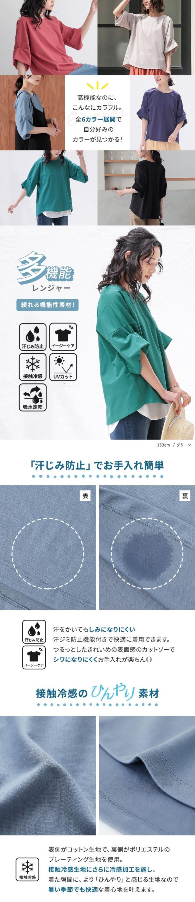 【送料無料】『多機能袖タックTシャツ』※メール便可※【10】[Tシャツ レディース トップス カットソー 半袖 汗じみ防止 接触冷感 UVカット イージーケア 吸水速乾 二の腕カバー 春 夏]