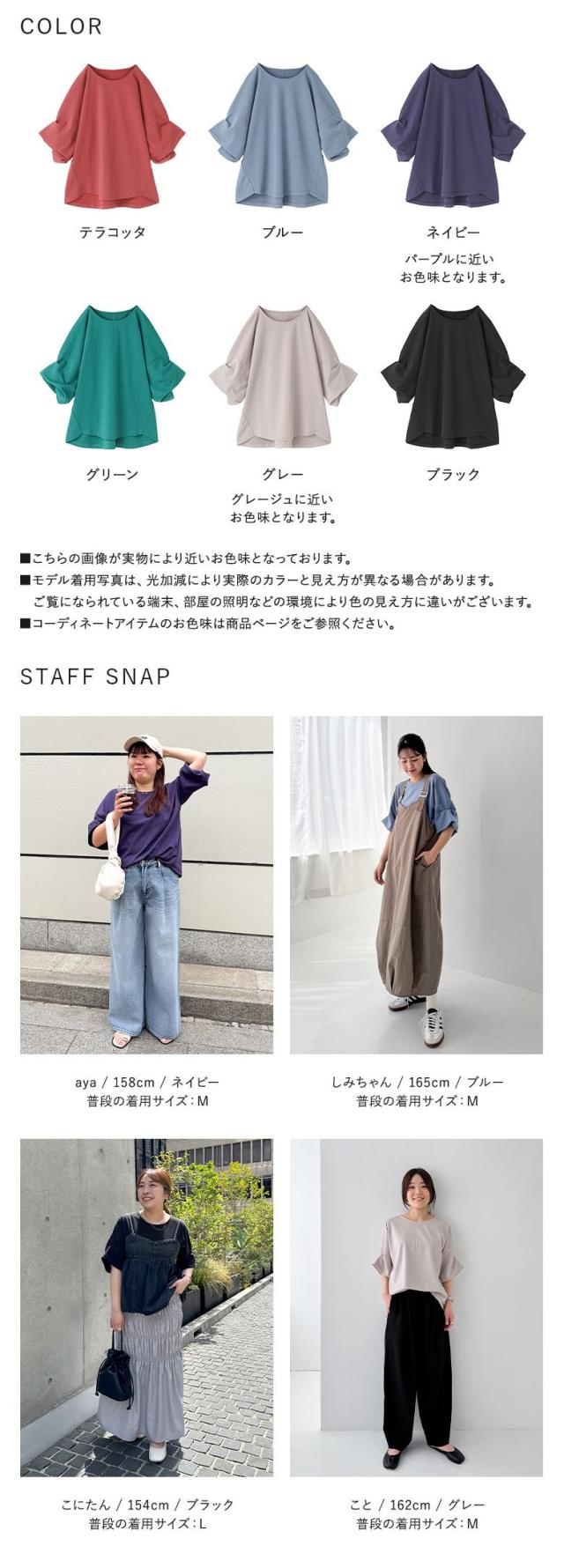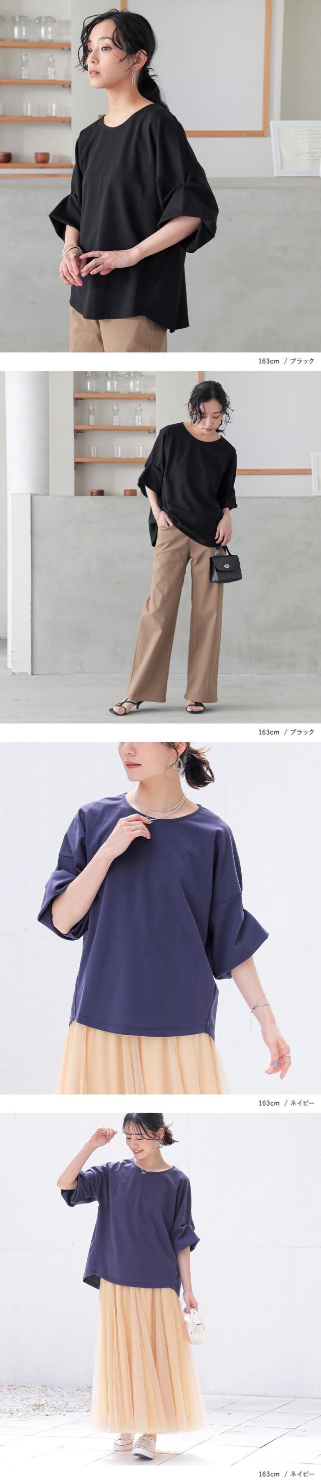 | staff:Q/159cm B78 W62 H91 【普段着用】 Tops: S/M Bottoms: S/M | 【フリーサイズ】 袖丈:ちょうどひじ位 着丈:ヒップ下少し見える位 腕周り:ゆったり バスト:ゆったり 全体:ゆったり カジュアルで着やすいカットソーですが袖のデザインで大人きれいめにも着られました。 |