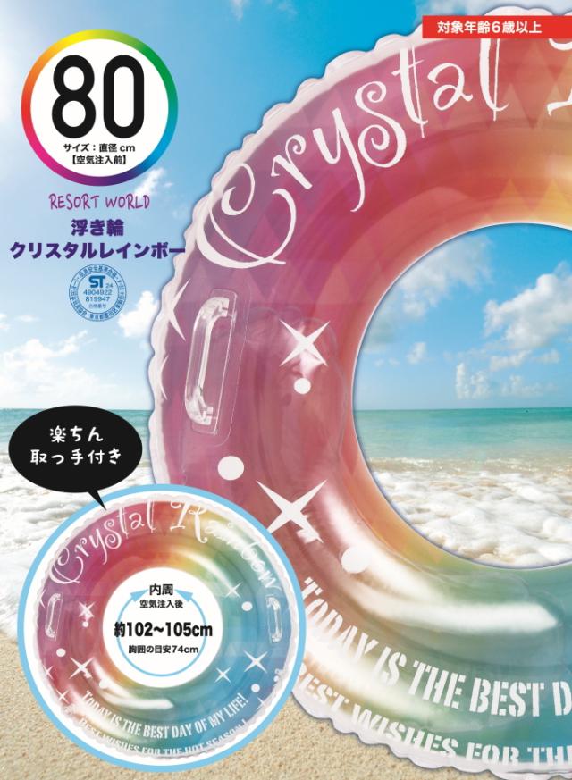 浮き輪 クリスタルレインボー 取っ手付き 80cm 081994-WR00782 アウトドア レジャー 海水浴 ビーチ 海 プール 浮輪 うきわ 子供 大人 夏グッズ ビーチグッズ おしゃれ かわいい 取っ手付き 東京ローソク