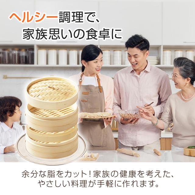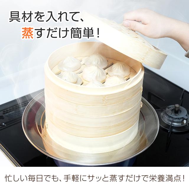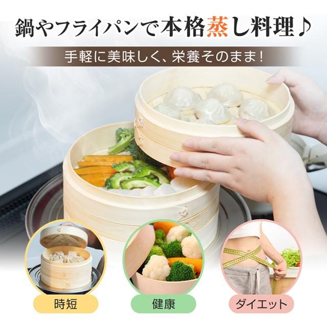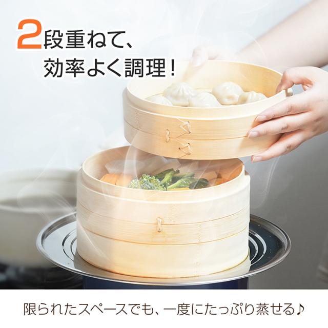 新生活 中華 せいろ 5点セット 蒸籠 蒸し板 受け台 2段 蓋 フタ 天然竹製 台輪 セイロ 直径21cm ステンレス 健康 ダイエット 鍋 フライパン 蒸し器 蒸し料理 手軽 簡単 ヘルシー 高耐久 抗菌性 調湿機能 in041