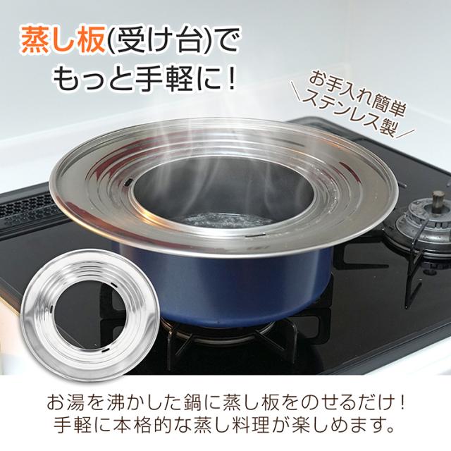 - 初めてのせいろ料理のために、21センチ蒸し板(ちょっと大きすぎ)と受け台付きを購入。 とても良かったのですが、せいろの高さがもう少し高いともっと使い勝手が良かったと感じました。