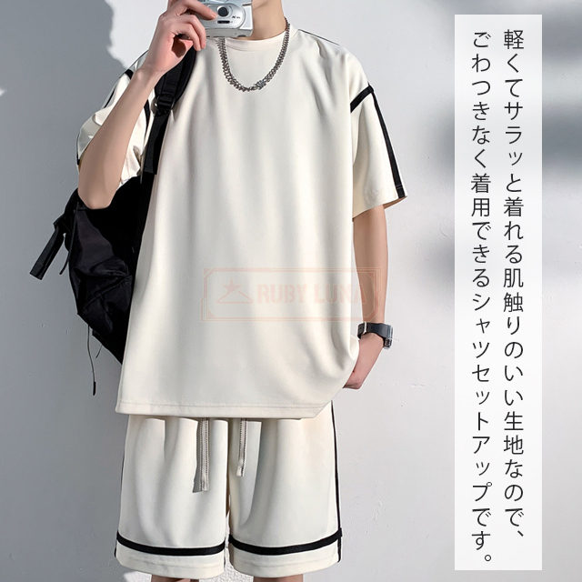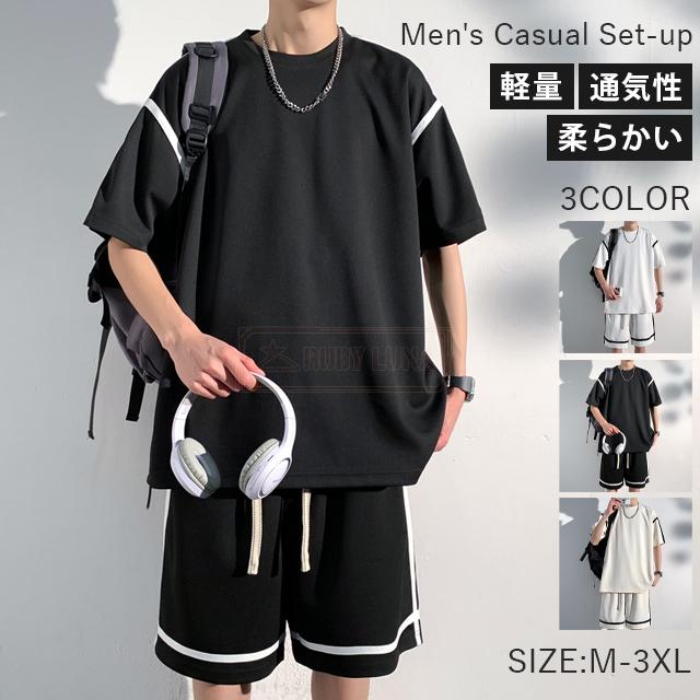 赤字覚悟 送料無料 セットアップ メンズ 上下セット 夏 涼しい 半袖 Tシャツ ショートパンツ 2点セット 無地 シンプル ジャージ ゆったり 薄手 快適 夏用 サマーセットアップ 夏物 夏服 スポーツウェア ルームウェア