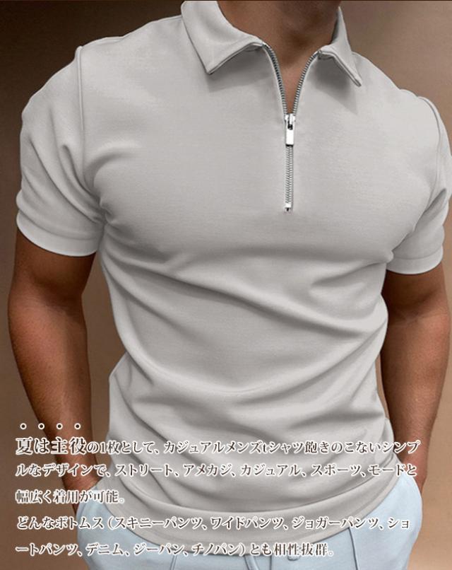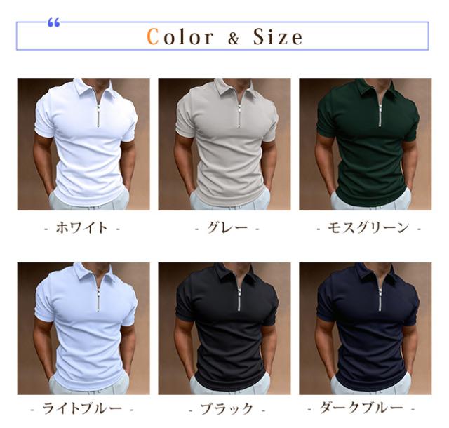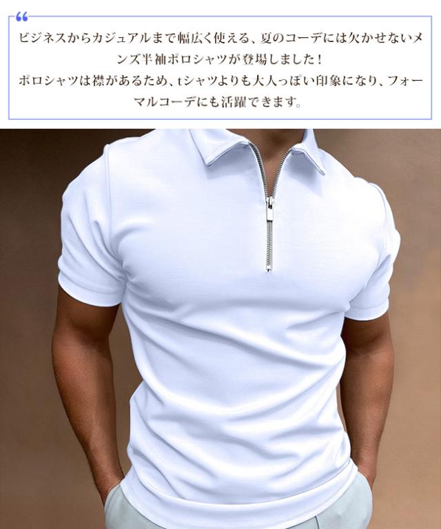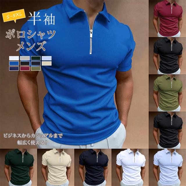ポロシャツ メンズ 半袖 ハーフジップ ゴルフウェア トップス ゆったり スポーツ 夏服 無地 薄手 快適 tシャツ 半袖 夏 ジッパー 大きいサイズ カジュアル 襟付き シャツ 吸汗速乾 ビジネス 部屋着 かっこいい