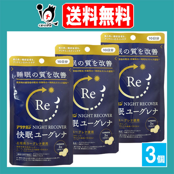 【機能性表示食品】アリナミンナイトリカバー 快眠ユーグレナ 30粒入×3個セット【アリナミン製薬】睡眠の質を改善 NIGHT RECOVER パラミロン配合サプリ 質の良い睡眠習慣を ナイトケア 睡眠改善 サプリメント