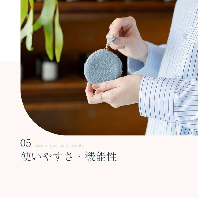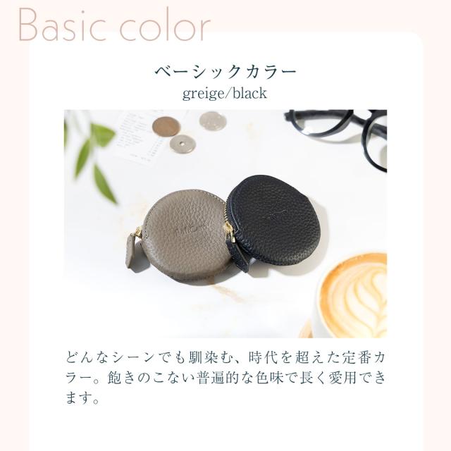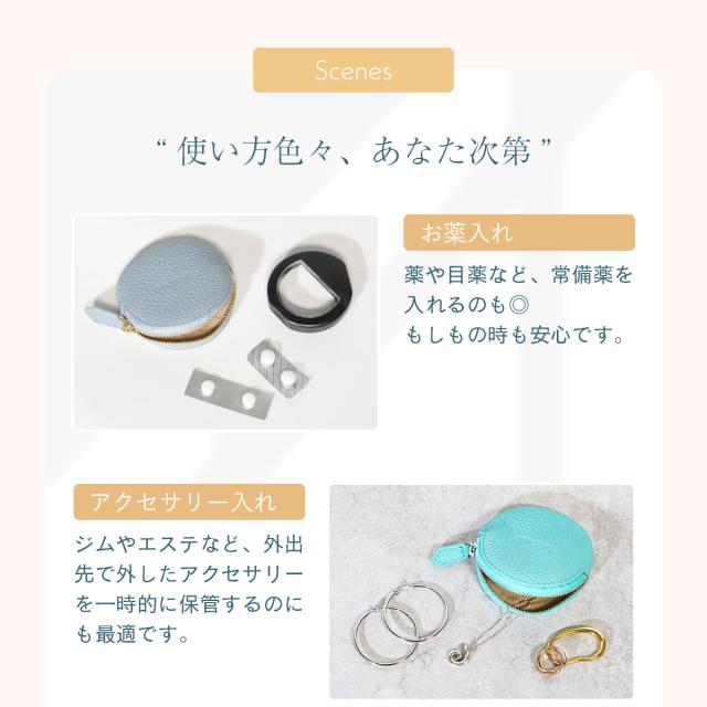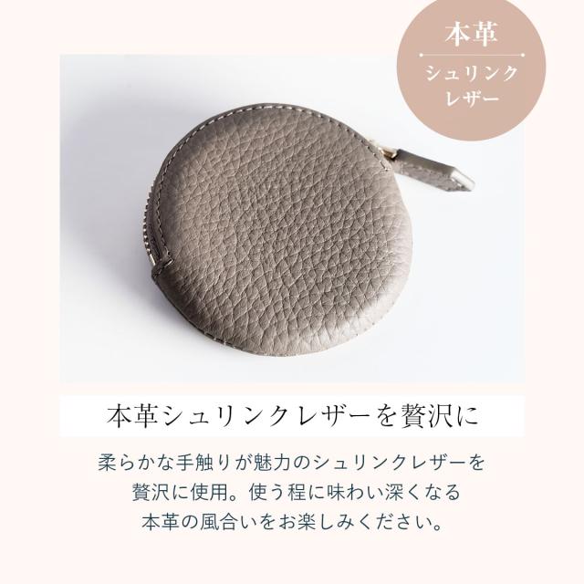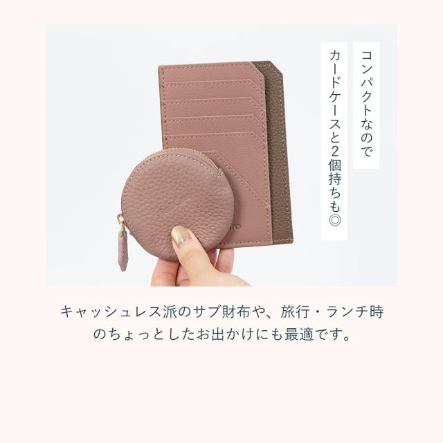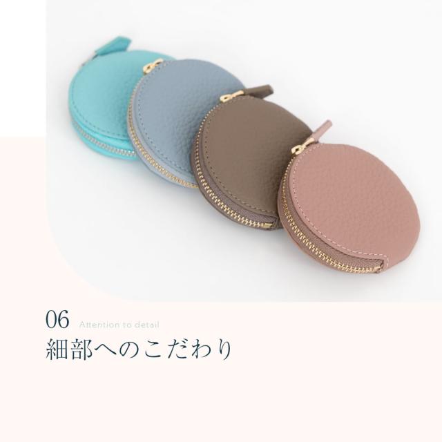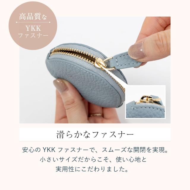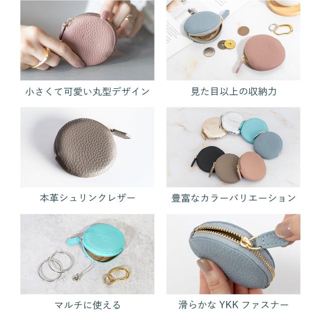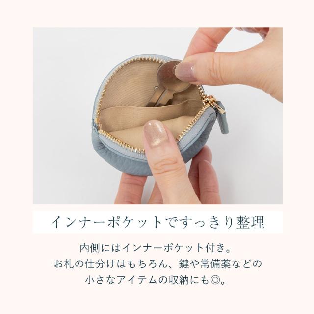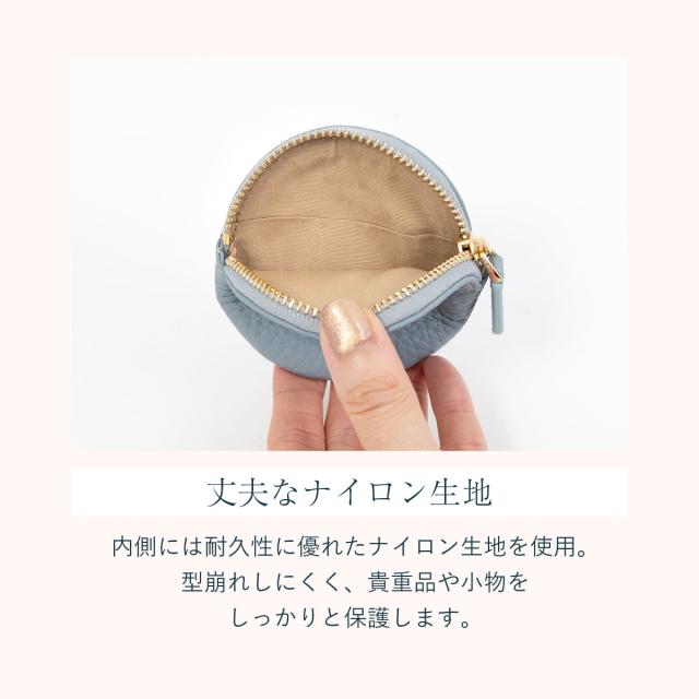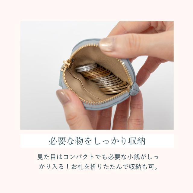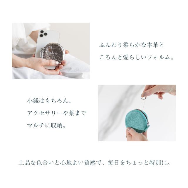 まるいフォルムがかわいい小銭入れです。小さめバッグにもポケットにも収まり、気軽に持ち歩けるサイズ感。見た目以上の収納力。コイン以外にもアクセサリーやイヤフォンのケースとしてもお勧めです。