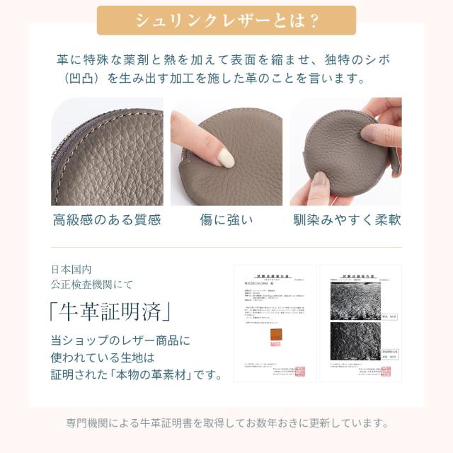 優しく手に馴染む、柔らかなシュリンクレザーを使用しています。ファスナーはYKK製、内側には仕分けに便利なインナーポケットをお付けしました。豊富なカラーバリエーションで、色違いのプチギフトにも◎