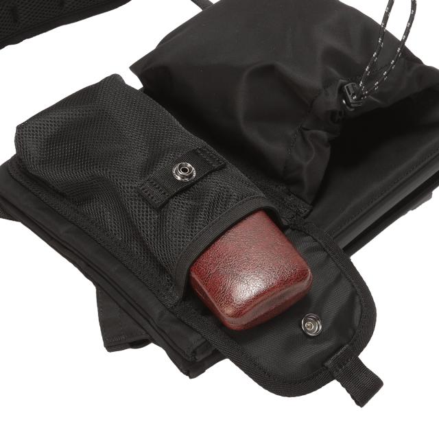 背面側には小物の出し入れに便利なメッシュポケットを2つ配置。