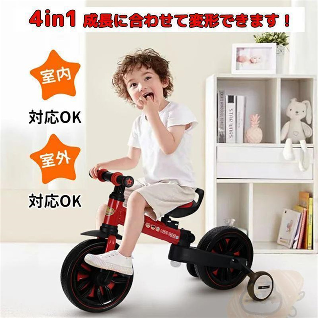 子供用 三輪車 4in1 バランスバイク 自転車 1歳 2歳 3歳 4歳 折りたたみ スタンド タイヤ 乗用玩具 軽量 キッズバイク 幼児用 誕生プレゼント 送料無料