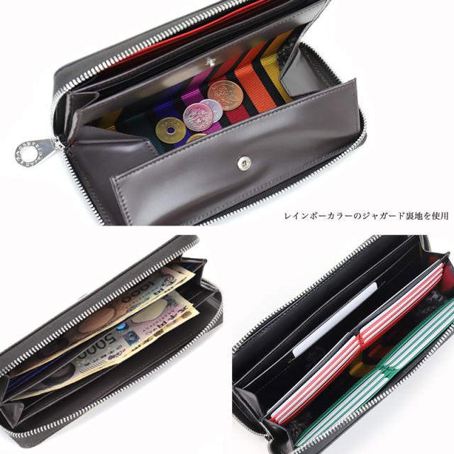 ラウンドファスナー仕様で見開きでカードポケットが見やすい作り。