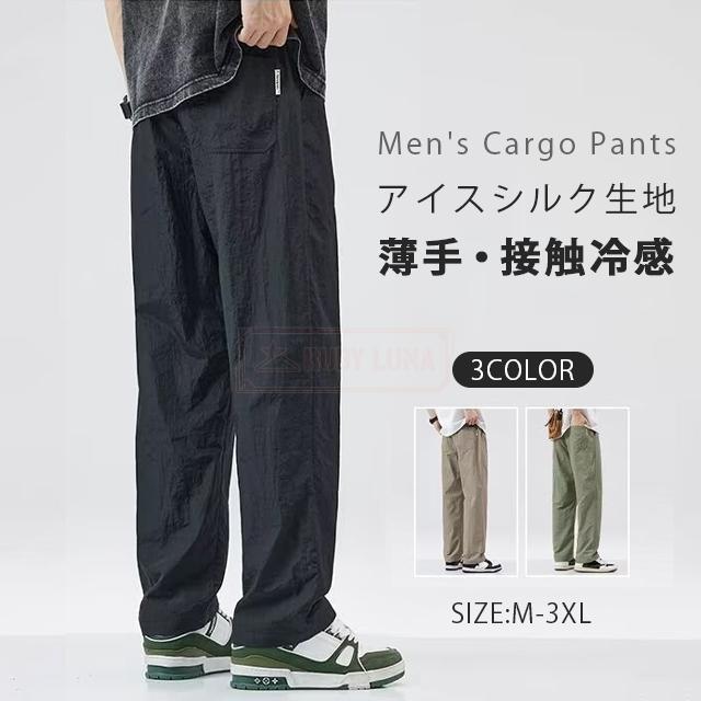 赤字覚悟 送料無料 ワイドパンツ メンズ アイスシルク パンツ 接触冷感 冷感パンツ 春夏秋 無地 速乾 軽量 吸汗 速乾 ゆったり ロングパンツ カーゴパンツ 作業着 作業服 薄手 通気性 清涼 涼感 涼しい uvカット 軽い