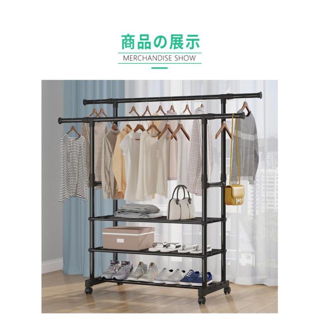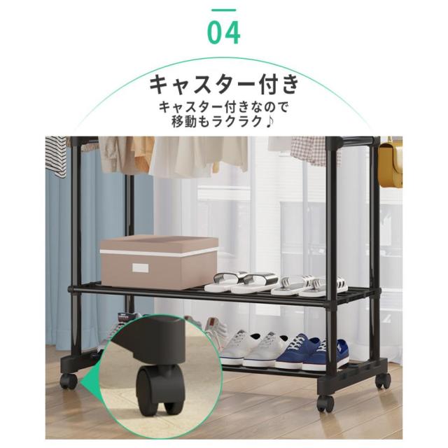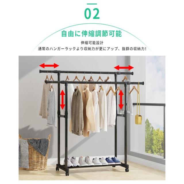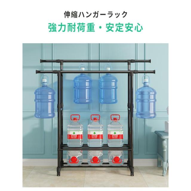 ハンガーラック 頑丈 伸縮 パイプハンガーラック 衣類収納 洋服掛けラック 洋服収納 キャスター付き コートハンガー コンパクト収納 部屋干し 梅雨対策 送料無料