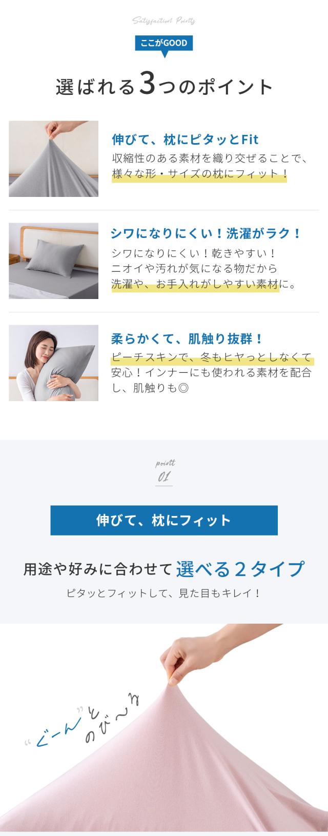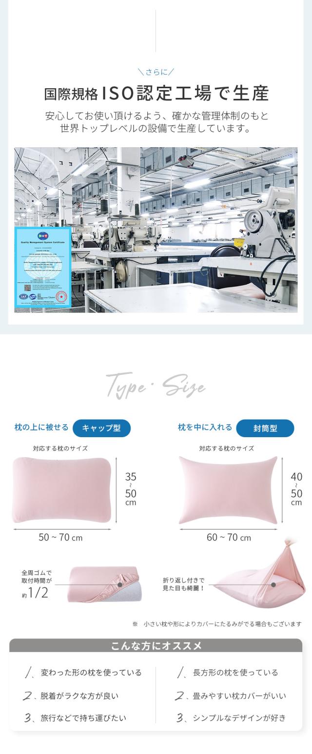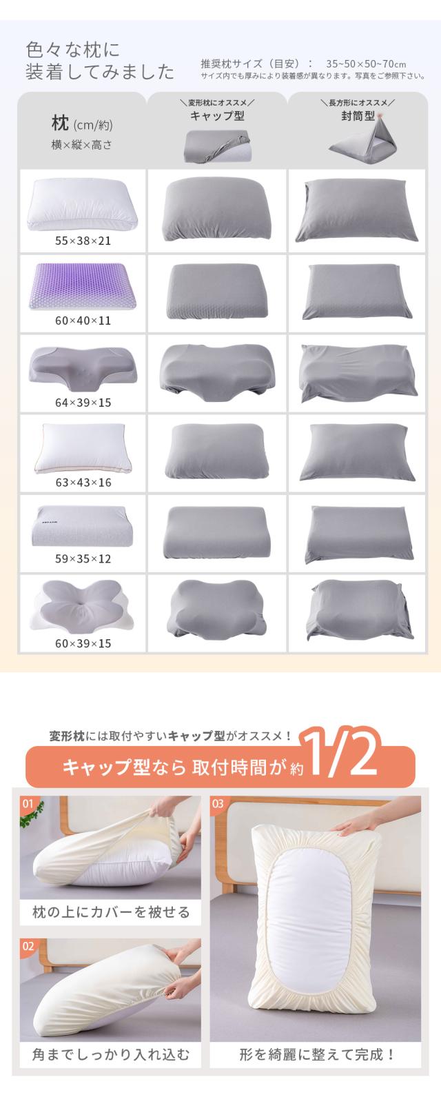 対応枕サイズ:封筒型 35-50×50-70 / 被せるキャップ型40-50×60-70