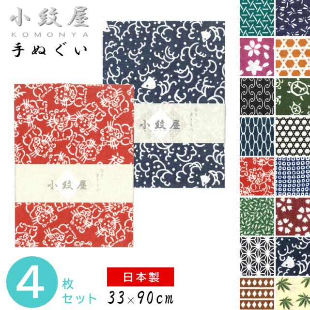 手ぬぐい 小紋屋 手拭い 4枚セット 和柄 今治産 日本製 33×90 小紋 小紋柄 古典柄 手拭い 洗顔 ふきん 綿100% コットン 薄手 温泉 お風呂 てぬぐい サウナ 剣道 武道 ガーデニング タオル ギフト 贈り物 還暦 古希 昭和風 切りっぱなし 【メール便送料無料】