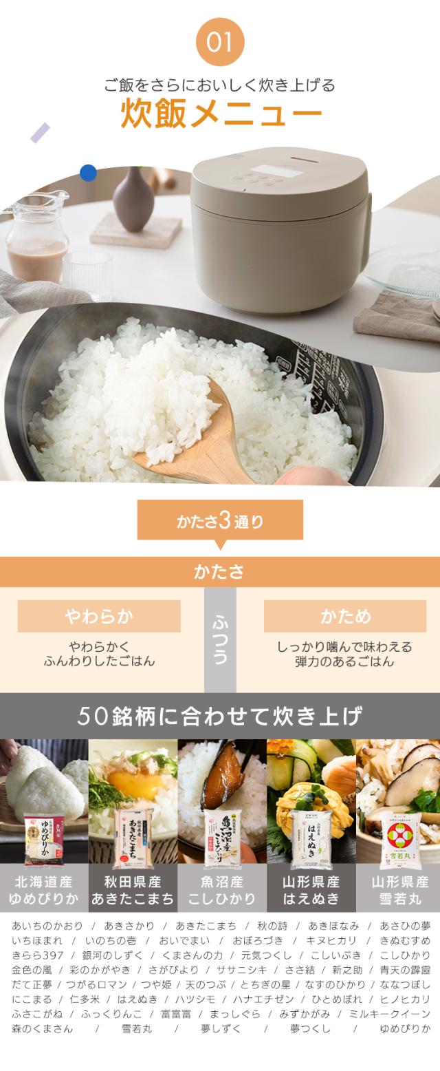 「米銘柄機能」「おこのみ炊き機能」など、よりお米の美味しさを引き出す機能が備わっています。