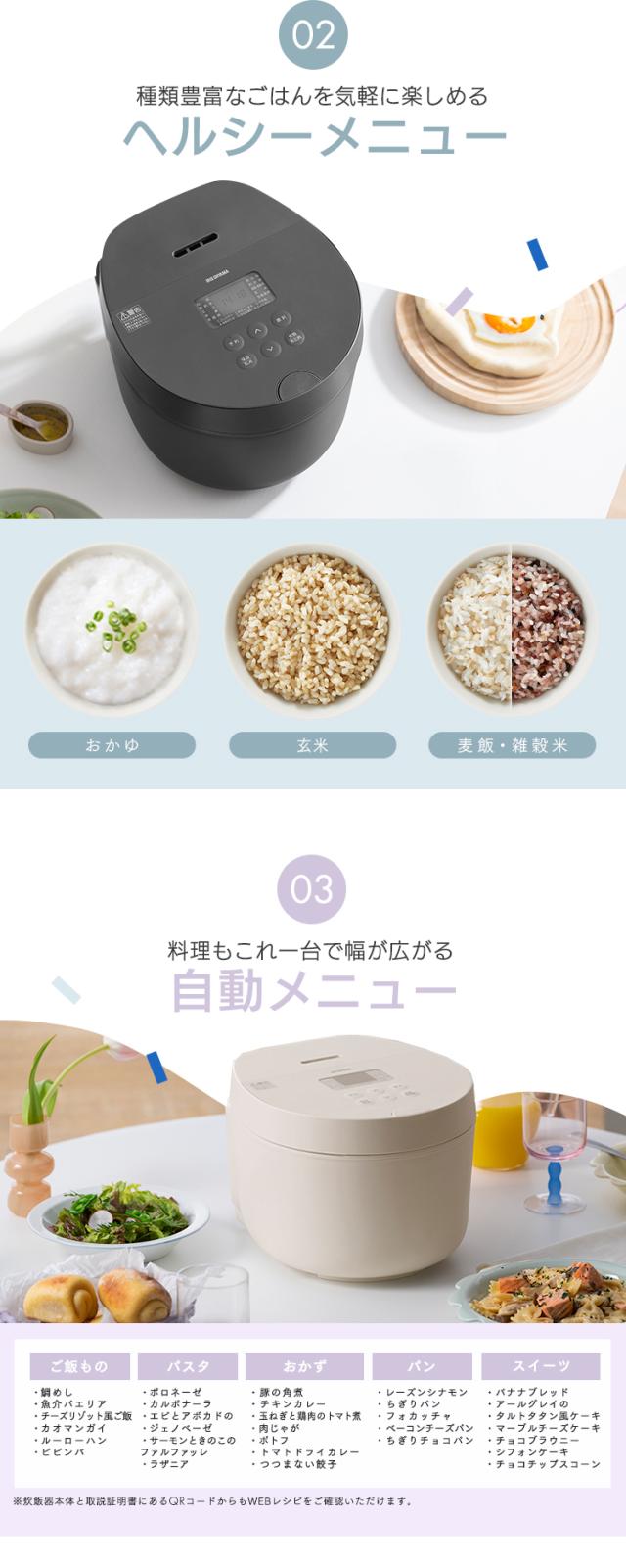 [検索用:炊飯器 5.5合炊き 1人用 5合炊き アイリスオーヤマ IH おしゃれ 小型 コンパクト 銘柄炊き 50銘柄 炊き分け パン ケーキ機能 低温調理 ヘルシーメニュー 低糖質 おかゆ 玄米 省エネモード お手入れ簡単 2人暮らし ih 炊飯ジャー 4967576706964 4967576706933 4967576706940 4967576706957 4967576706971]