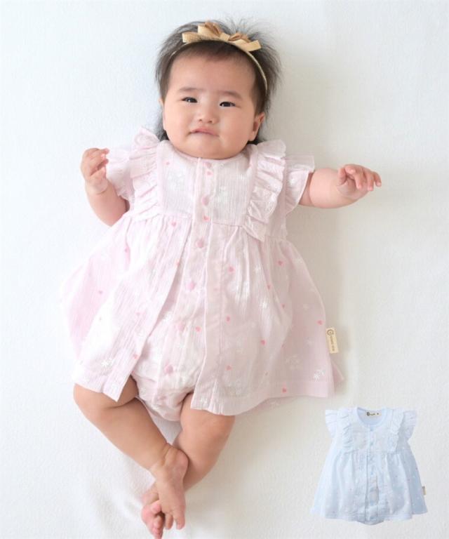 ロンパース カバーオール ベビー 綿100% クレープ 半袖 カバー オール 女の子 夏 ショートオール ミニオール プレオール 身長70/80cm ニッセン nissen