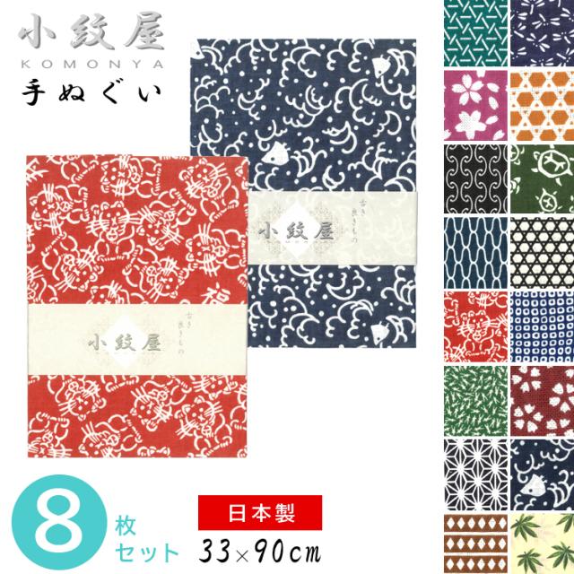 手ぬぐい 小紋屋 手拭い 8枚セット 和柄 今治産 日本製 33×90 小紋 小紋柄 古典柄 手拭い 洗顔 ふきん 綿100% コットン 薄手 温泉 お風呂 てぬぐい サウナ 剣道 武道 ガーデニング タオル ギフト 贈り物 還暦 古希 昭和風 切りっぱなし 【メール便送料無料】