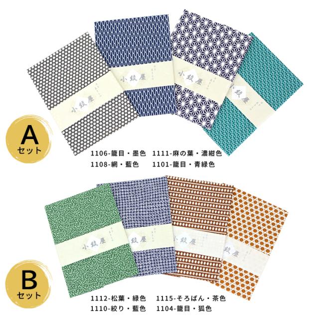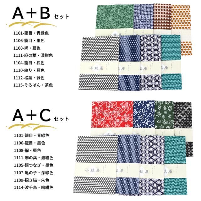 Aセット:1101-籠目・青緑色、1106-籠目・墨色、1108-網・藍色、1111-麻の葉・濃紺色