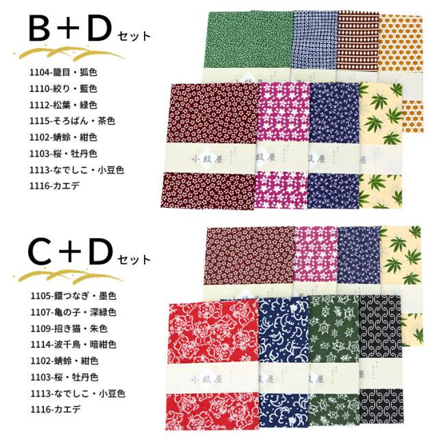 Dセット:1102-蜻蛉・紺色、1103-桜・牡丹色、1113-なでしこ・小豆色、1116-カエデ【2505r】