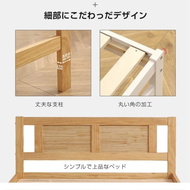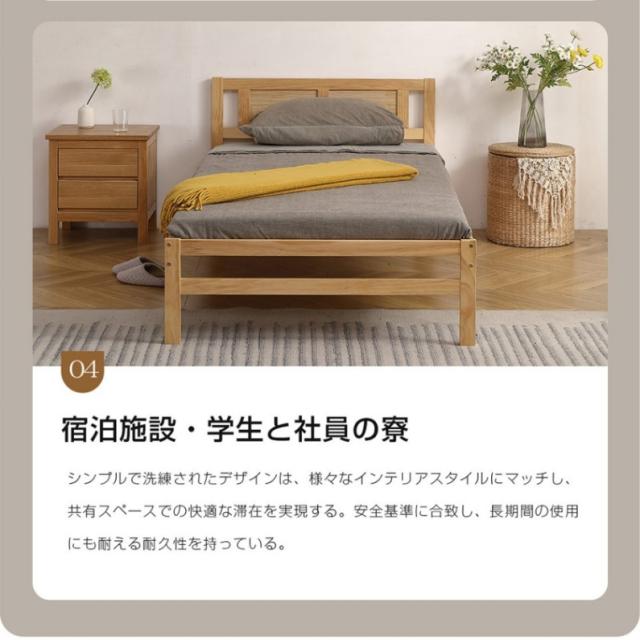【優雅で温かみのあるデザイン】自然美に溢れる天然木ベッドは、優雅で温かみのあるデザイン。心地よい香りと柔らかな触感が毎日の睡眠を癒しのひとときに。シンプルなデザインで様々なインテリアに適し、レイアウトや用途に合わせて自由に配置可能で、空間を最大限に活用する。