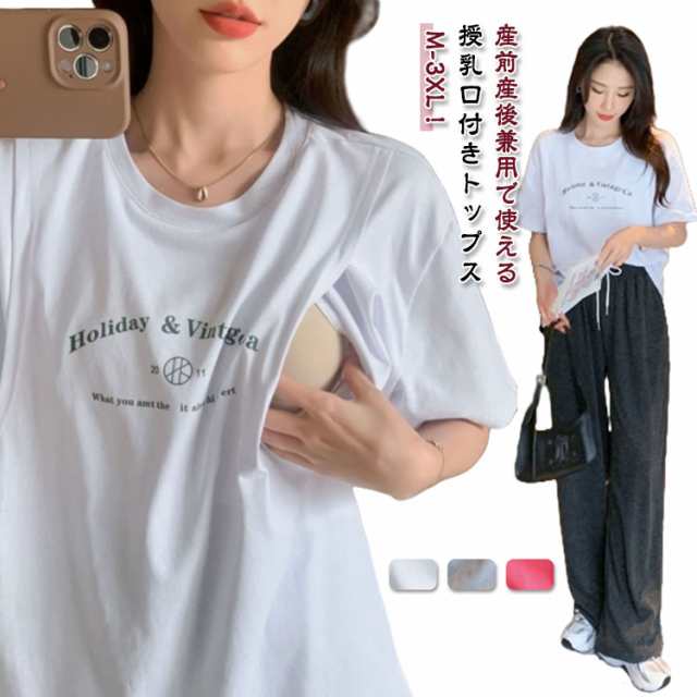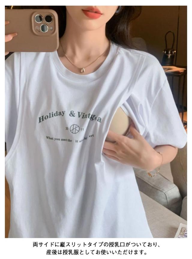授乳服 授乳Tシャツ 部屋着 tシャツ 妊婦服 授乳ウェア ロンT トップス 春夏 可愛い 授乳服 授乳 インナー クルーネック カットソー ルームウェア マタニティ シンプル 産前産後兼用 妊婦 大きいサイズ 体型カバー