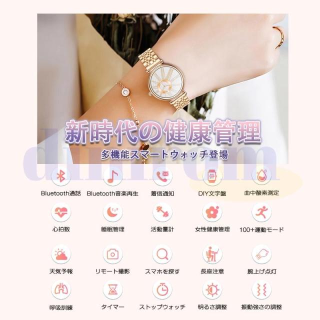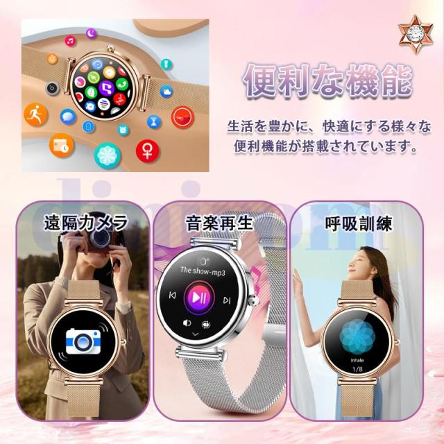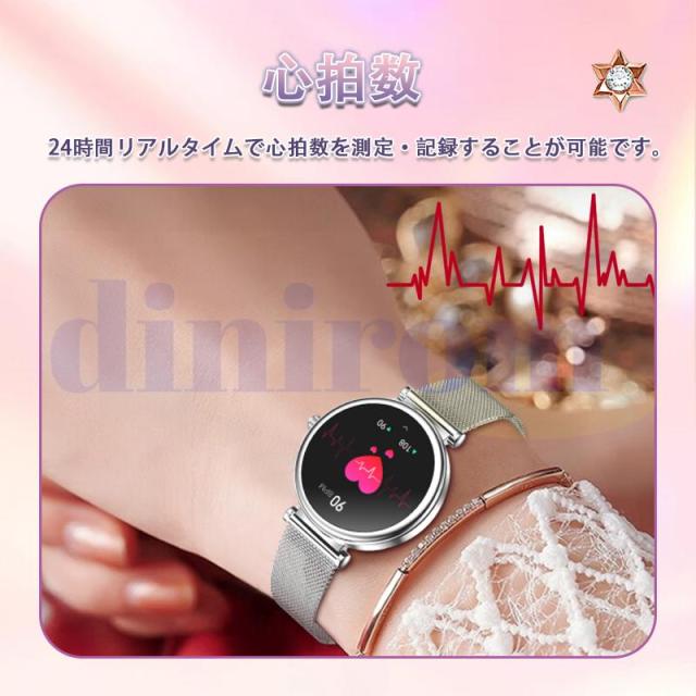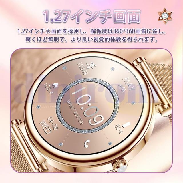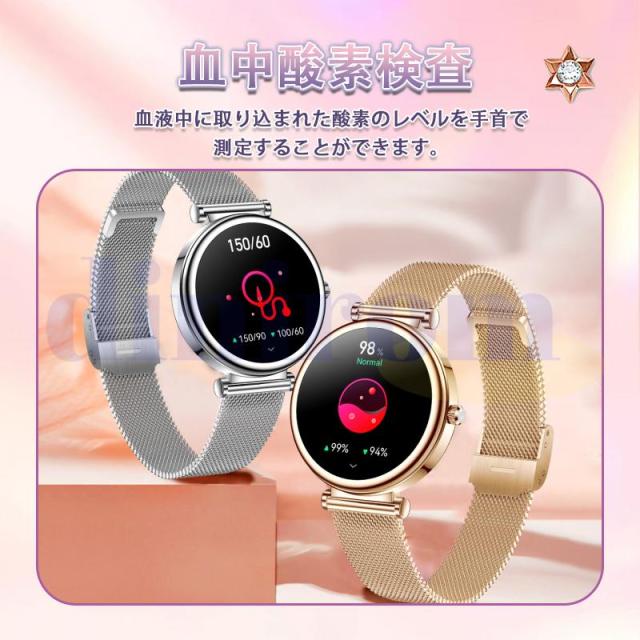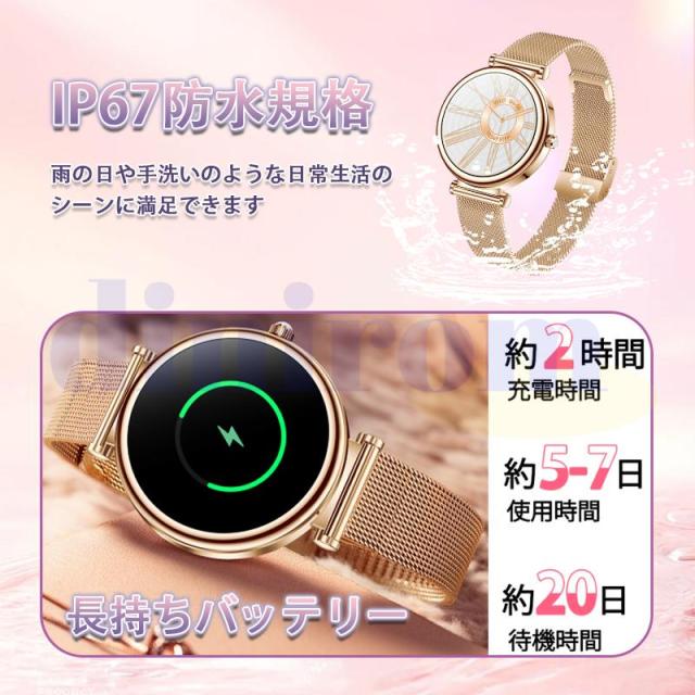 スマートウォッチ 2025最新型 血圧測定 心拍数 血中酸素 睡眠検測 通話機能 着信通知 女性生理管理 IP67防水 音楽・カメラ制御 天気予報 長座注意 レディース