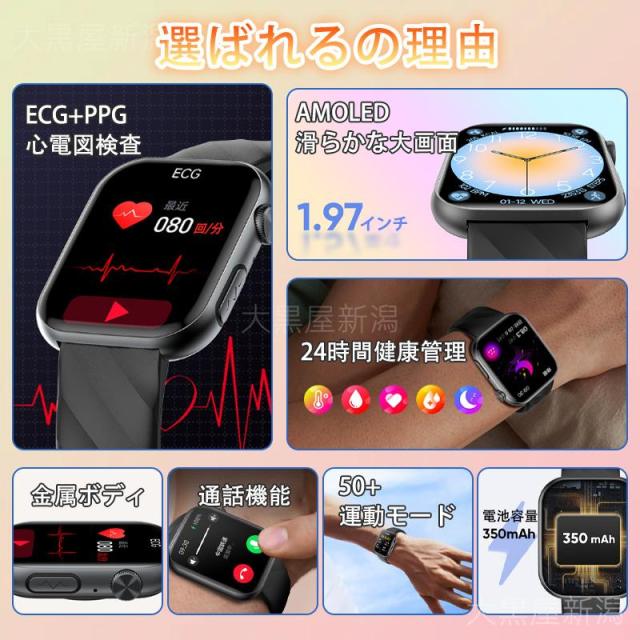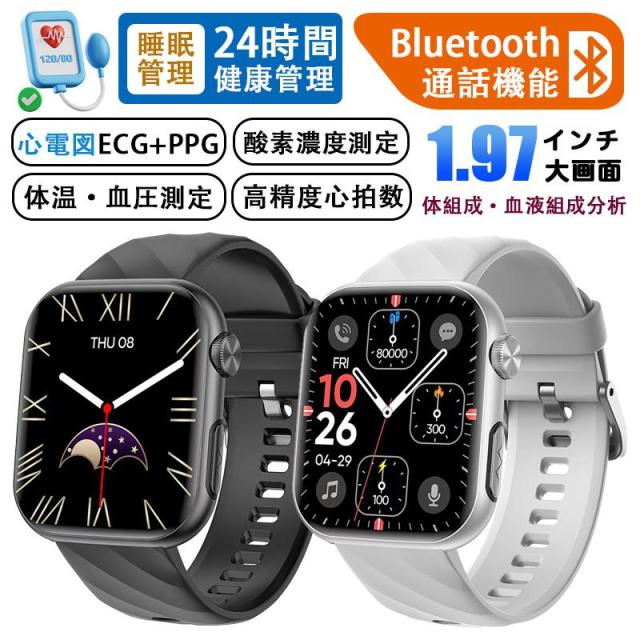 スマートウォッチ 日本製センサー 血糖値 心電図ECG+PPG 通話機能 1.97インチ 睡眠管理 HRV 血中酸素 心拍数 呼吸率 体温 IP67防水 iphone/Android 日本語説明書
