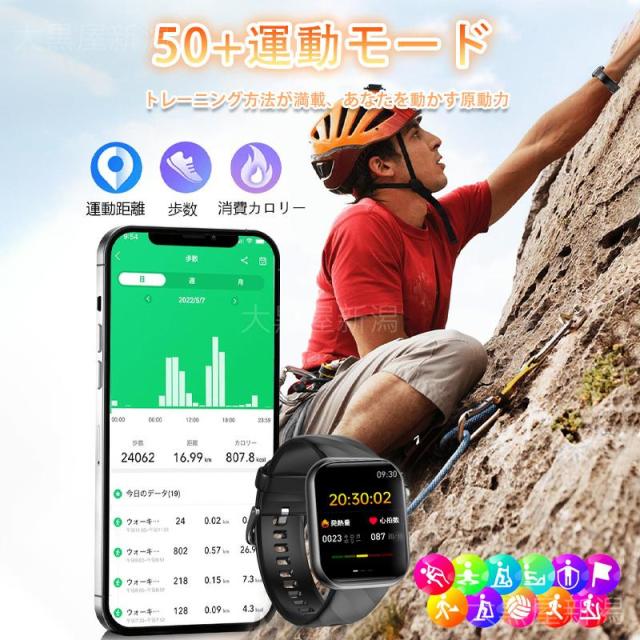 ランニング、自転車、バスケットなど多種類の運動モードが搭載され、スポーツウォッチとして役に立つ。歩数、消費カロリー、距離などのデータを記録し、体の状況により運動目標を設定して合理的に運動量、運動時間を管理できます。【一日中健康管理 】高感度検知センターが内蔵され、スマートウオッチを手元につけるだけて、一日中身体の状態を十分に把握し、手軽に健康チェックできます。