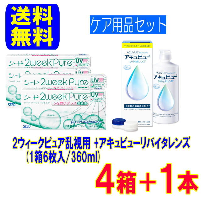 2ウィークピュア うるおいプラス 乱視用【4箱】+アキュビューリバイタレンズ360ml【1本】 送料無料 2週間使い捨て コンタクトレンズ トーリック シード★