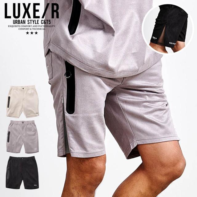 ハーフパンツ メンズ おしゃれ 膝上 ショーツ ショートパンツ 短パン スウェード スエード ブランドロゴ プリント 細身 スリム タイト スタイリッシュ 止水ジップ ホワイト ブルー ブラック 白 青 黒 M L LL XL LUXE/R ラグジュ ブランド 男性 大人 春服 夏服 大人 ファッション カジュアル きれいめ スポーティ ゴルフ ゴルフ用品 ストリート ストリート系 ストリートファッション 韓国 韓国系 韓国ファッション 下北沢 下北系 古着 古着系 90s 90年代 2000年代 Y2K 父の日 父の日ギフト 父の日プレゼント 20代 30代 40代 メンズファッション 東京 プレゼント 誕生日 記念日 贈り物 ギフト スポーツショーツ アクティブショーツ スタイリッシュショーツ 美脚パンツ スポーツミックスコーデ 大人ショートパンツ 夏コーデ メンズ 春夏ショーツ クールパンツ ゴルフコーデ ジムウェア配送について