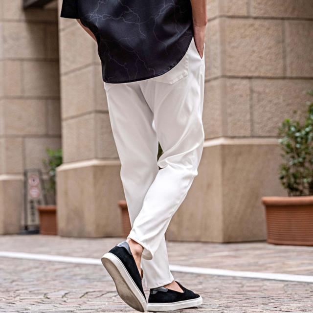 穿いた瞬間からひんやりとする接触冷感生地を採用したレギンススキニーパンツ。
