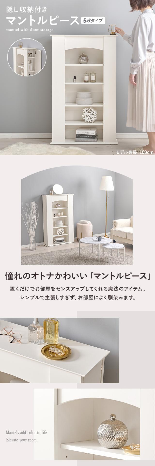 ★全品対象250円offクーポン★ 収納家具 マントルピース 暖炉 5段収納マントルピース5段 ホワイト RCC-1545WH [代引不可] マントルピース 収納 飾り棚 ディスプレイラック オープンラック 隠し収納 暖炉 シェルフ 本棚 おしゃれ 送料無料