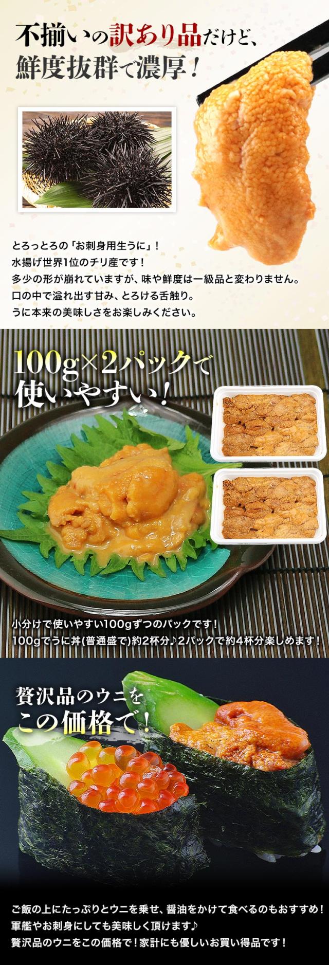 うに 100g×2パック 訳あり 冷凍 不揃い 崩れ お刺身 ウニ うに 雲丹 冷凍 グルメ 食品 海鮮