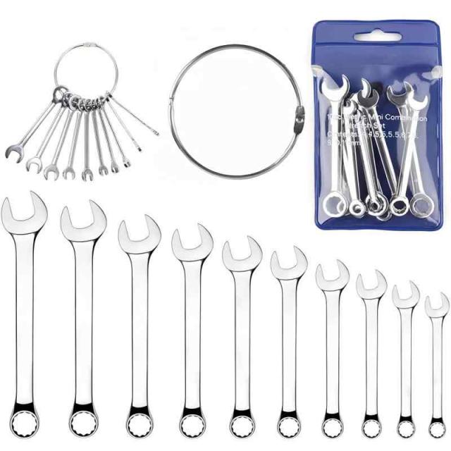ミニスパナセット 10本組 コンビネーションレンチ スパナセット ミリ規格 極薄スパナ 鏡面仕上げ コンビネーションスパナ CR-V製 片口スパナ 4mm 4.5mm 5mm 5.5mm 6mm 7mm 8mm 9mm 10mm 11mm 各種メンテナンス