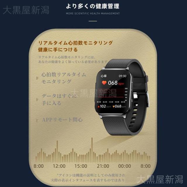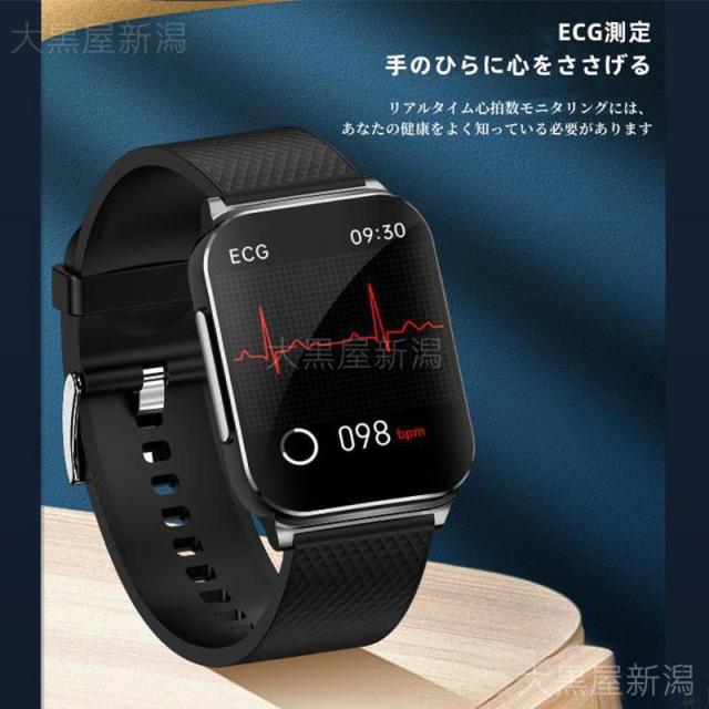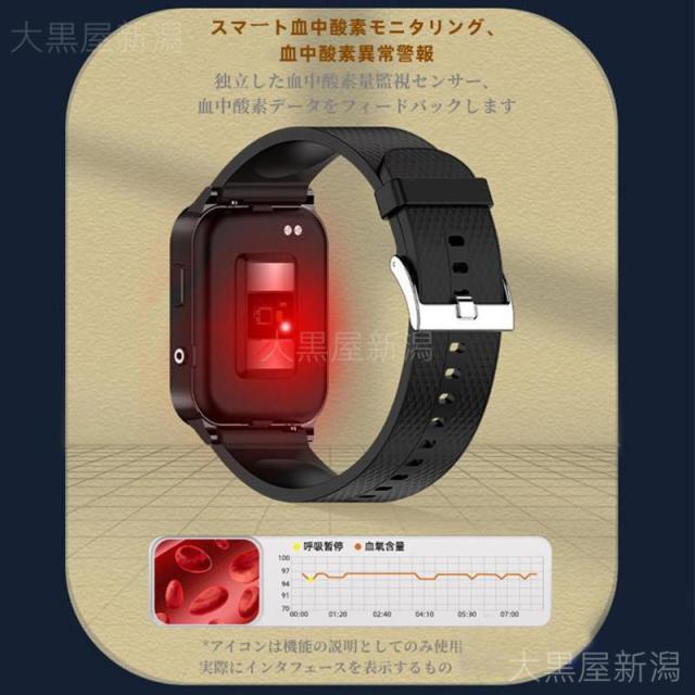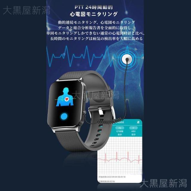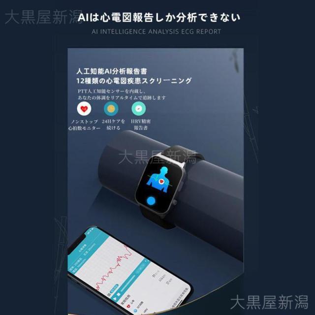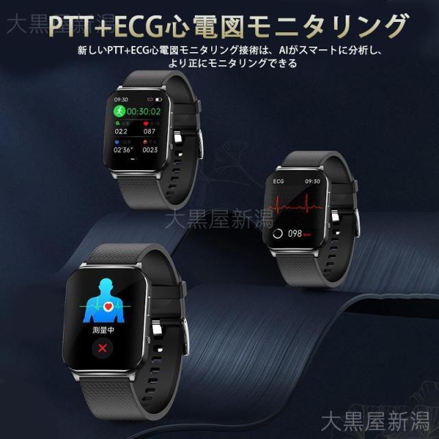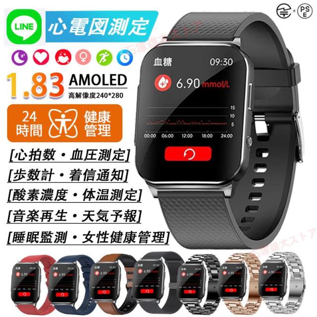 「医療レベル心電図ECG+PPG 」スマートウォッチ 日本製センサー 血糖血圧測定 心拍数 血中酸素 睡眠管理 歩数計 体温 生理管理 LINE通知 胸貼り付き 天気予報