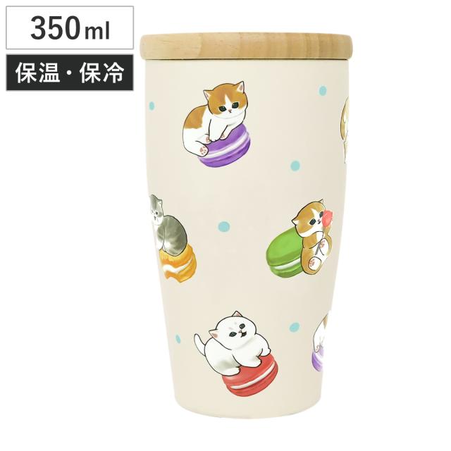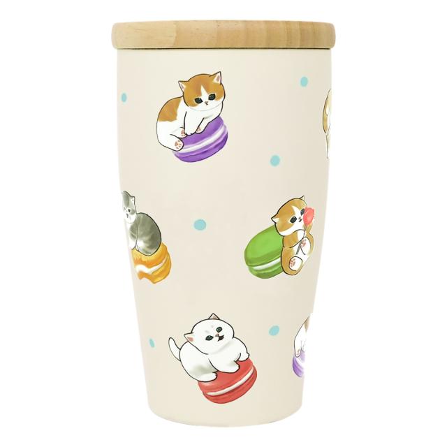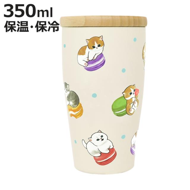 タンブラー mofusand 木蓋付きタンブラー マカロン ( モフサンド ステンレス 保温 保冷 キャラクター かわいい ねこ ネコ 猫 おしゃれ 天然木 ステンレスタンブラー ふた付き 真空二層構造 ホット アイス )