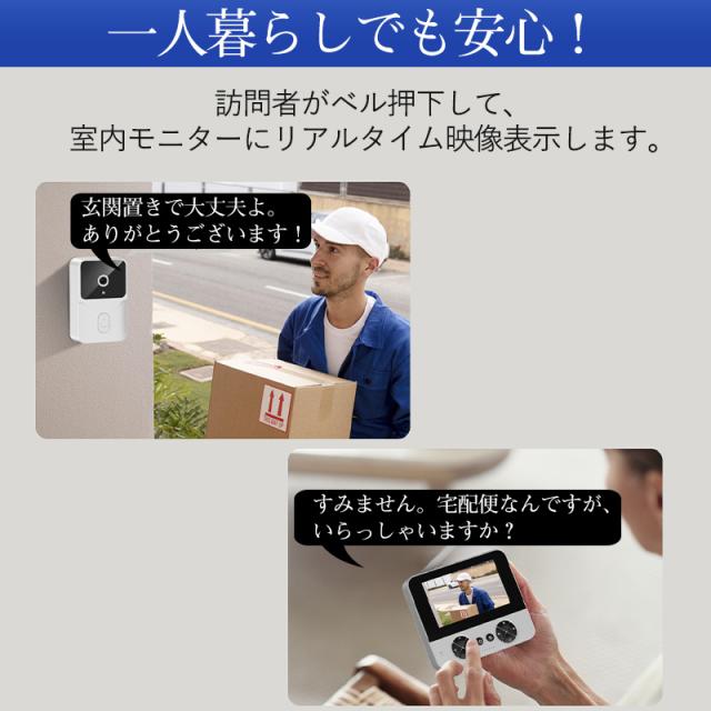 即納 インターホン テレビドアホン ドアベル ドアホン チャイム 録画機能 カメラ付き 工事不要 暗視機能 インターフォン 防犯カメラ 家庭用 品質保証