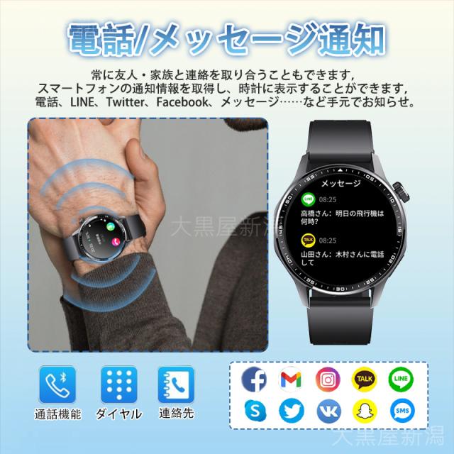 【最先端のBluetooth5.3搭載・通話/メッセージ通知】最先端のbluetoothバージョン5.3を採用することで、リンク状態でのエネルギー消費量を低減し、スマートウォッチの持続時間を延長しています。また、複雑な環境下での信号安定性を向上させ、干渉に対する耐性を強化しています。また、Bluetooth通話機能と内蔵スピーカーとマイクを搭載しており、スマートフォンと接続後、スマートフォンを取り出さずにスマートウォッチ上で電話をかけたり、受けたりすることができます。スマートウォッチと専用アプリ「H BAND」を組み合わせることで、Line/Twitter/Viberなどのすべての通知と着信を振動でお知らせします。大容量バッテリー内蔵され、バッテリー持ちは非常によく、充電せずに数日間着用していてもバッテリーが切れませんでした。(*個人の利用状況によっては、持続可能な利用時間が異なります)。