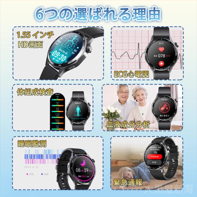 スマートウォッチ 日本製センサー 通話機能 医療レベル心電図ECG+PPG 第6世代血糖値 血中酸素 血圧測定 高精度心拍数 睡眠管理 呼吸率 着信通知 2025最新モデル