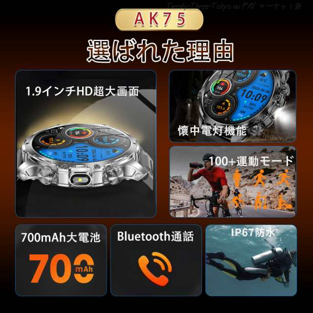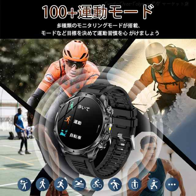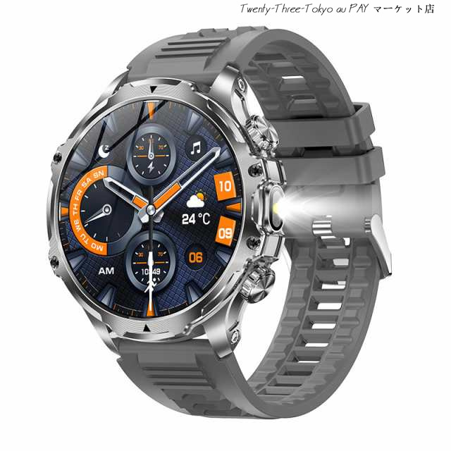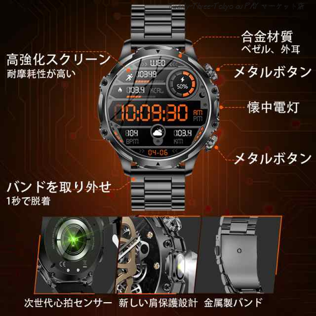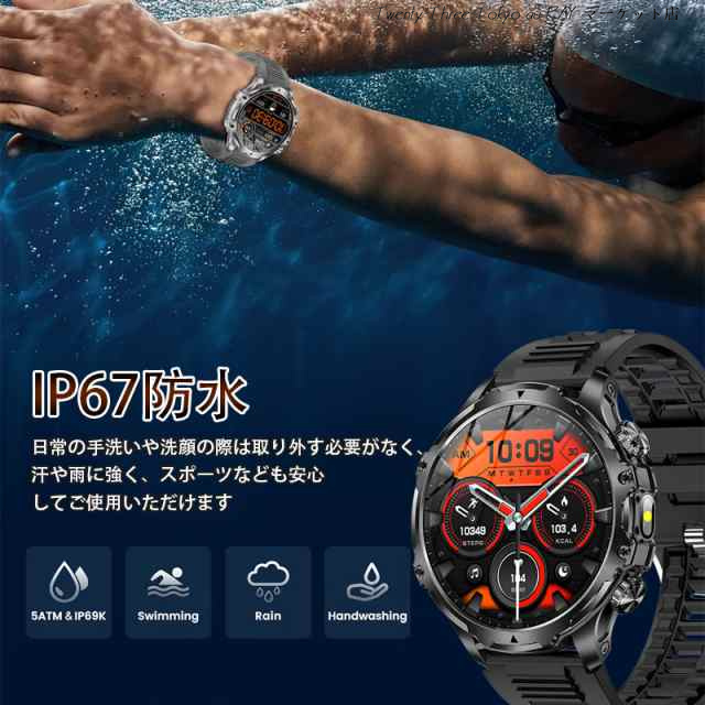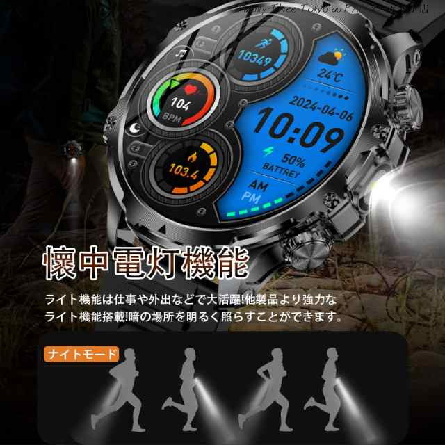スマートウォッチ メンズ 軍用規格 丸型 1.9インチ超大画面 smart watch 血圧 血中酸素測定 歩数計 活動量計 通話機能付き 100種類運動モード 腕の懐中電灯 耐衝撃 IP67防塵防水 長持ちバッテリー 腕時計 父の日 プレゼント