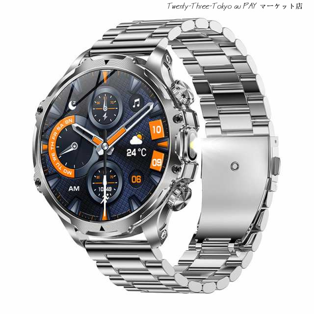 このスマートウォッチ 大画面は、CNC切削技術による鮮やかな質感と、輝きと奥行きを際立たせる特徴的な時計ベゼルのデザイン、繊細なラインが魅力です。更に、軍用様のボディには傷がつきにくく1.9インチHDのAMOLEDディスプレイ(416*416PPi)が組み込まれており、太陽光の40%を反射する性質があり、フレームなしのディスプレイで大きなフォントで屋外でも老眼の方でも情報やデータが見やすく表示されます。滑らかなタッチスクリーンと機械音の回転式リューズの双方で操作が可能です。美しさと実用性(耐熱性、耐衝撃性、耐水性)が見事に融合したこの高級でスタイリッシュな腕時計 メンズは、ビジネスシーンはもちろんプライベートシーンでも活躍いたします。洗練されたデザインと優れた機能性で、ぜひご検討いただきたい逸品です。