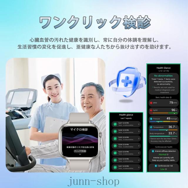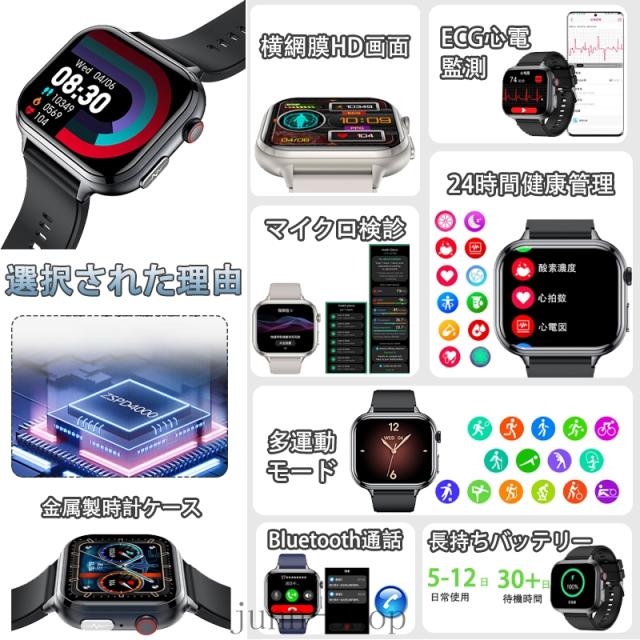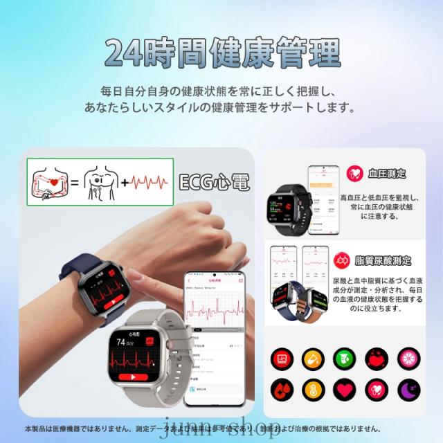 即日発送 スマートウォッチ 五臓健康管理 医療レベル心電図ECG+PPG 血圧 血糖値測定 BMI 尿酸値 血中脂質 血中酸素 睡眠監視 体温検知 ストレス監視 女性生理管理 心拍数 活動量計 歩数計 通話機能付き 着信通知 iPhone Android対応 敬老の日 プレゼント