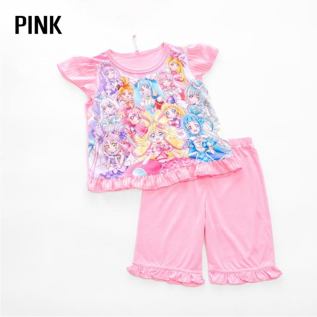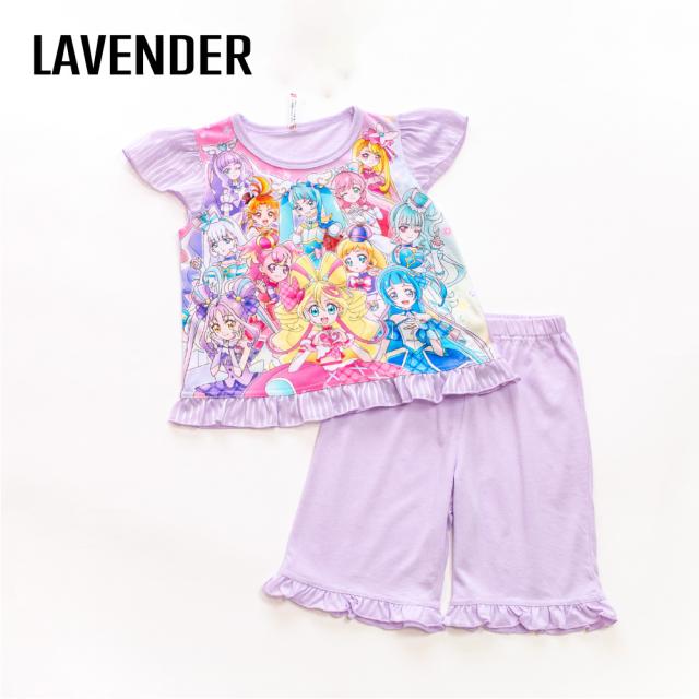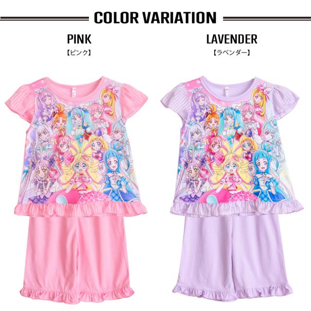 プリキュアオールスターズ ガールズパジャマ 勇気がでる!光るパジャマ 暗いところで光る 光る勇気リング付き 女の子 半袖 薄くて軽い!快適Tシャツ素材 天竺 蓄光プリント 100 110 120 130 ピンク ラベンダー プリキュア