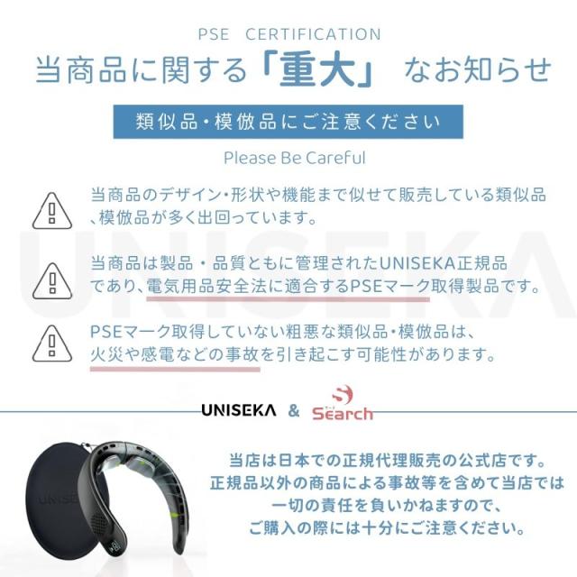 日本出身の専門のデザイン本部チームは上質なネックファンを開発するため、日本人の日常的な暑気払いの方法や健康習慣に踏まえた上に、日本人の体型、頸椎、首、肩に根ざした緻密に作り込まれたものであり、素材にもこだわり、上質な仕上がりを実現しています。UNISEKA-S8より日本の伝統的な健康意識と最新の伝導冷却技術を融合した、至高のネックファンをお届けいたします。