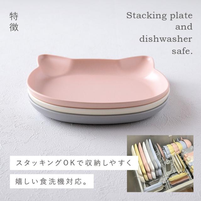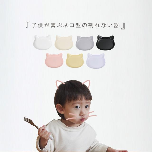 皿 プレート 12.9×11.3cm 猫型 食器 BPAフリー 猫 ネコ ねこ 食洗機対応 レンジok 子供 キッズ 赤ちゃん ベビー 割れない 抗菌加工 日本製 かわいい catte ねこ 抗菌 プレート