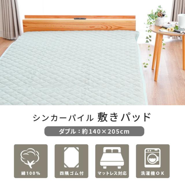 さらさら 敷きパッド ダブル パイル部 綿100% タオル地 夏用 春夏 シンカーパイル パイル キルティング 吸水 速乾 四隅ゴム ベッドパッド