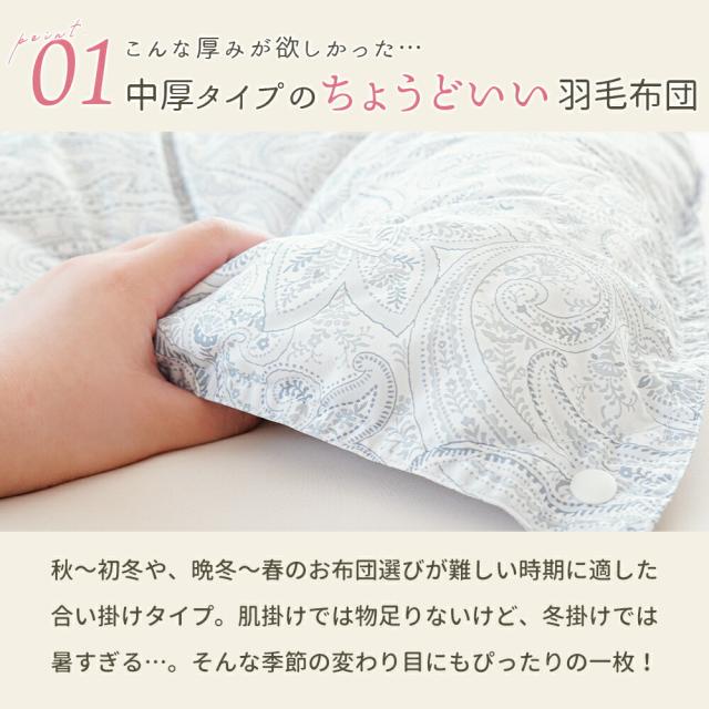 合間の季節に使いやすい西川の羽毛合掛け布団【単品販売ページ】