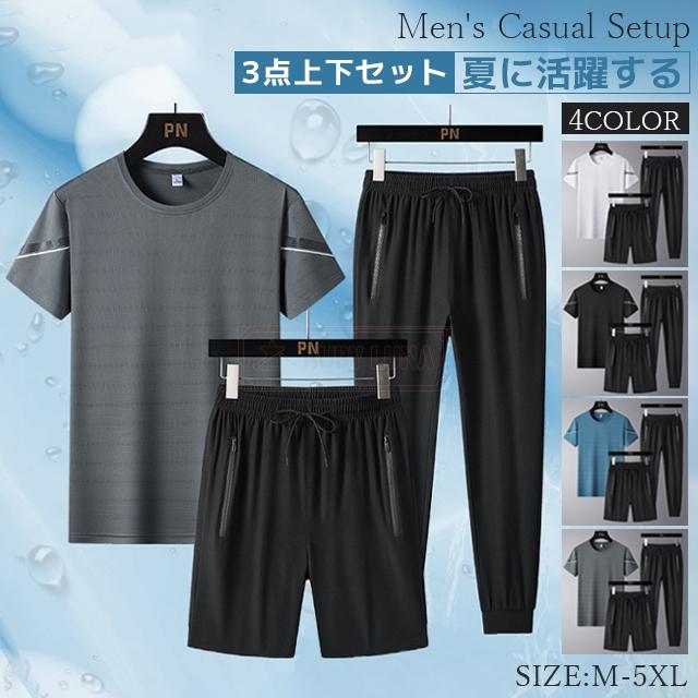 最安挑戦 冬新作 送料無料 新作 セットアップ メンズ ジャージ 3点セット 春夏 薄手 吸汗 速乾 運動着 半袖Tシャツ 短パン ジョガーパンツ 上下セット シンプル 無地 運動着 軽量 アウトドア スポーツウェア ランニングウェア