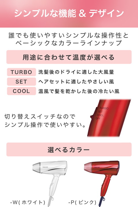 テスコム TESCOM マイナスイオン ヘアードライヤー ヘアドライヤー マイナスイオン 折りたたみ 大風量 軽量 ピンク ┃TD330B-P/E